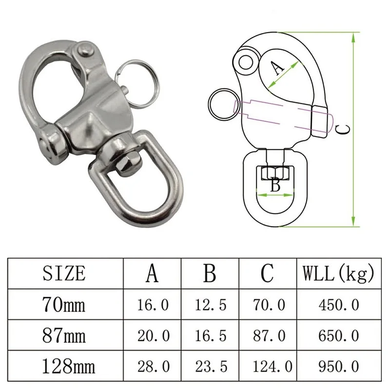 5PCS Stainless Steel 316 Mooring Quick Release Spring Swivel Snap Shackle 70mm 87mm 128mm Swivel Shackle For Lifting Strap Sale