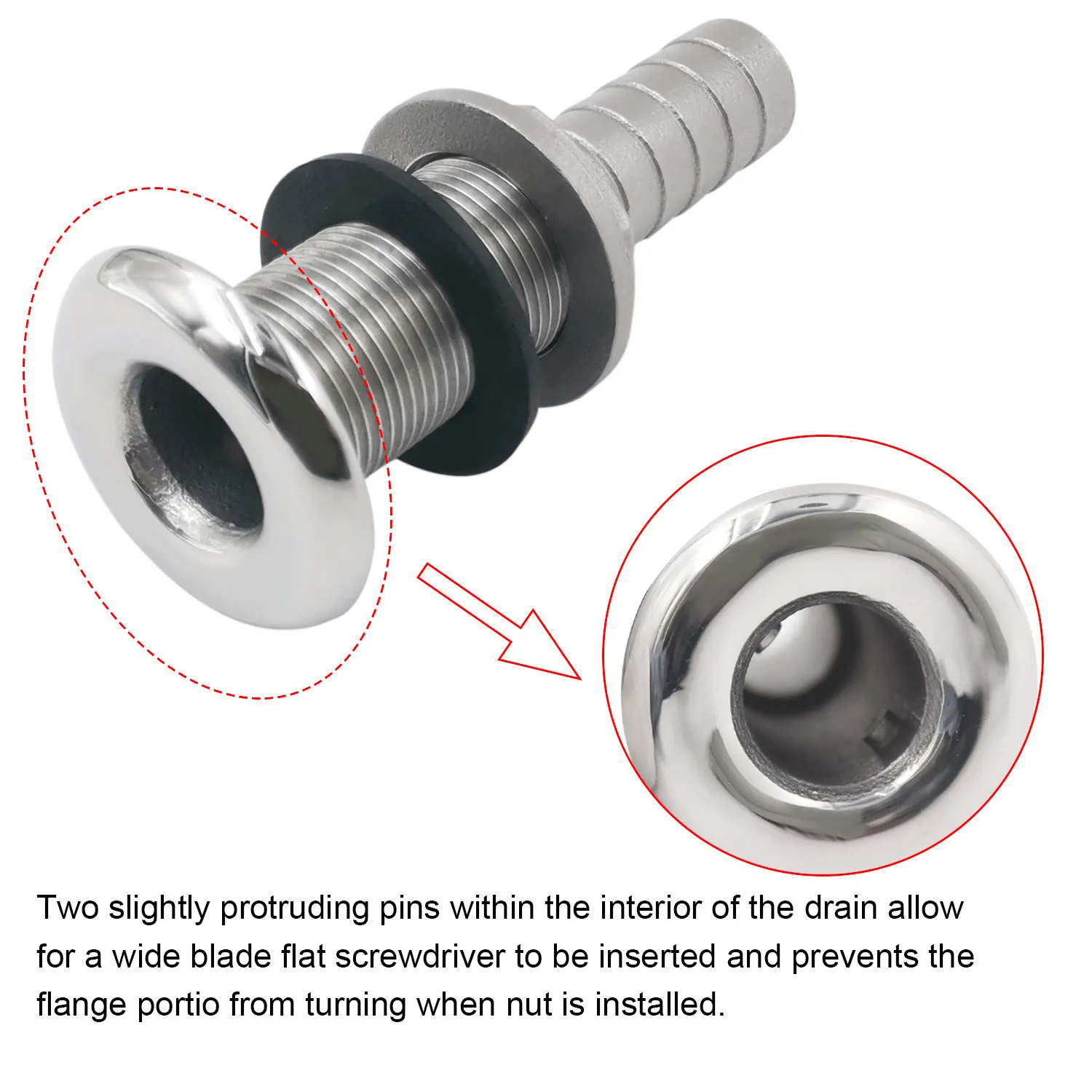 1/2",3/4",1",1-1/4" Barbed Extra Long Straight Thru-Hull Marine Stainless Steel 316 Boat Thru Drain Connector Fittings with Nut&Custom Gasket for Boat、RSV
