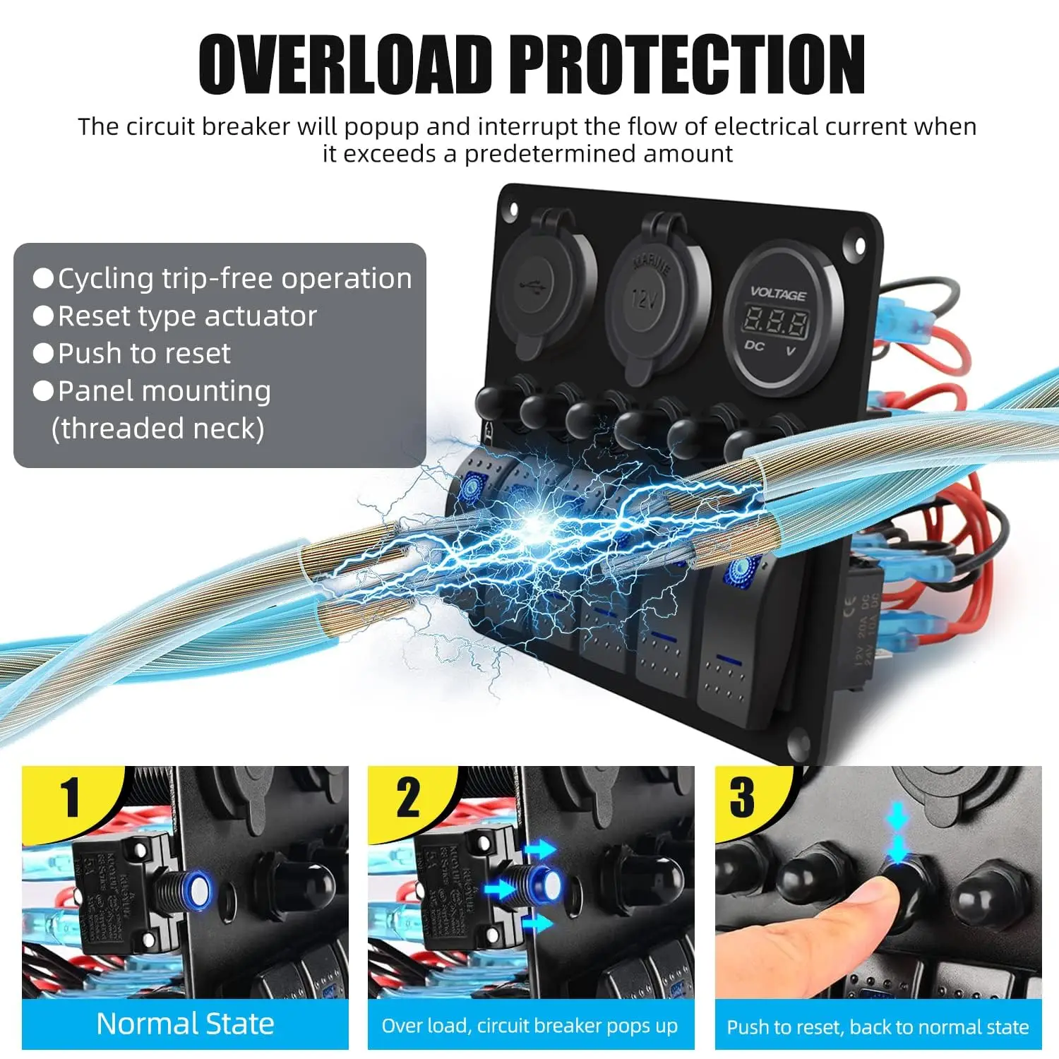 【Multi-Protection, More Secure】 Circuit breakers for each switch seperately for short circuit protection, overload protection, reverse polarity protection, and multiple protection, more secure to use, very convenience for driving.