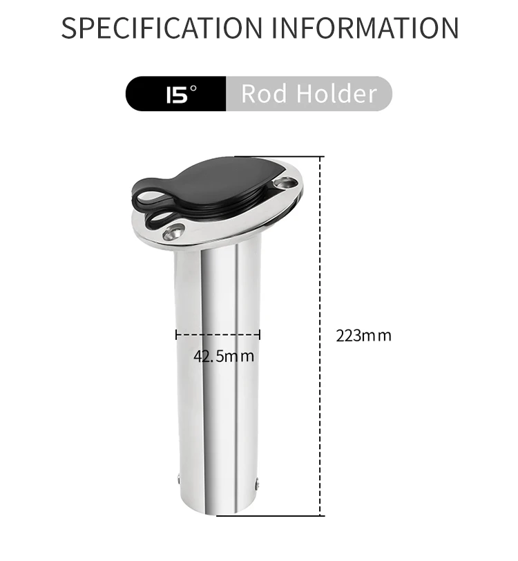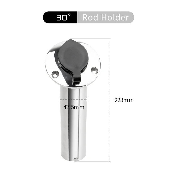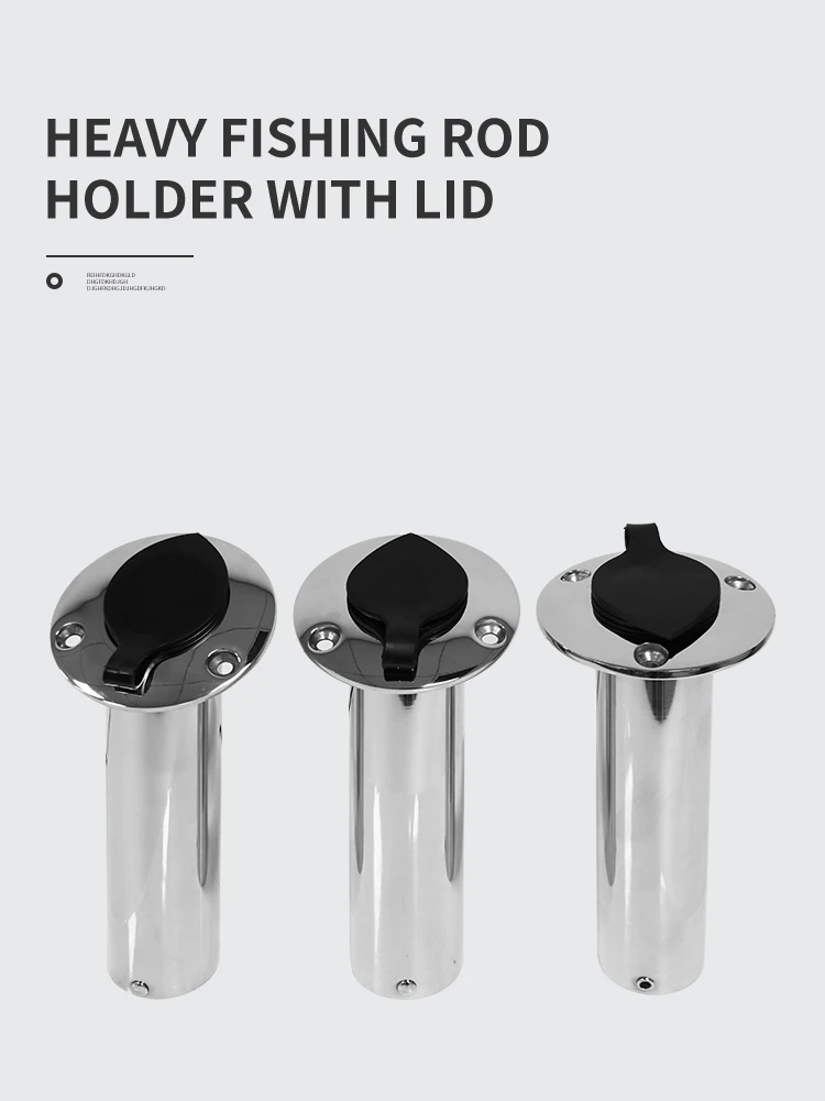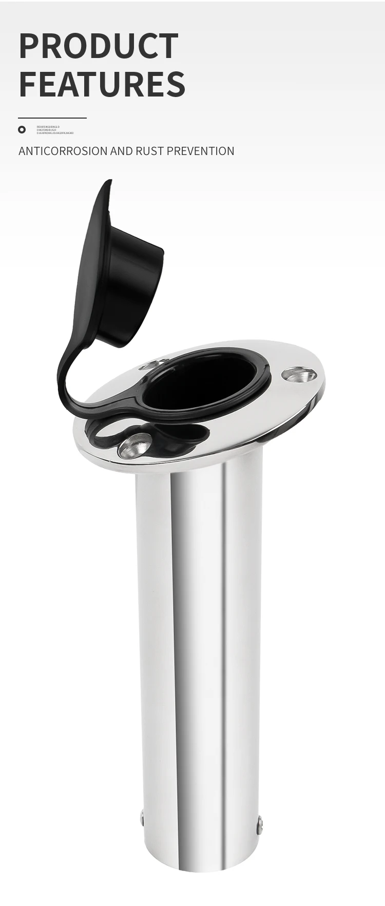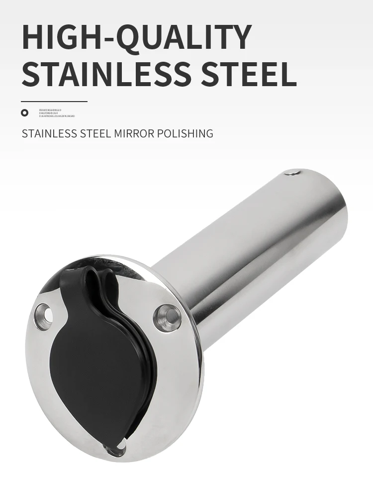 Marine Stainless Steel Heavy Duty Fishing Rod Holder Round 15/30/90 Degree with PVC Cover Flush Mount Rod Holder Boat Hardware