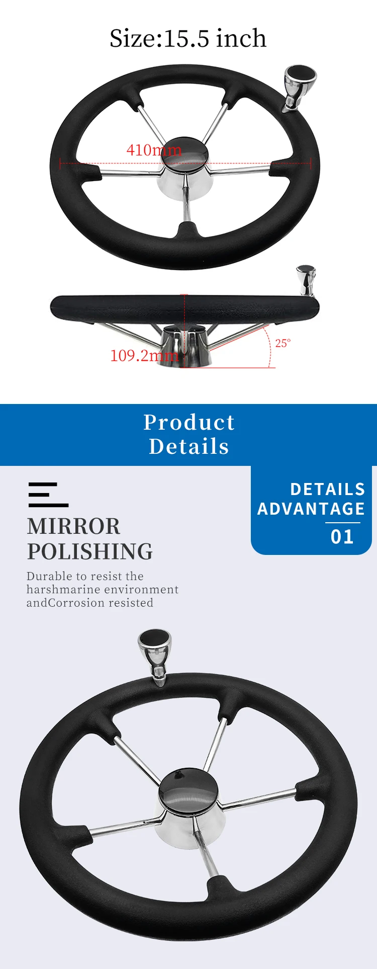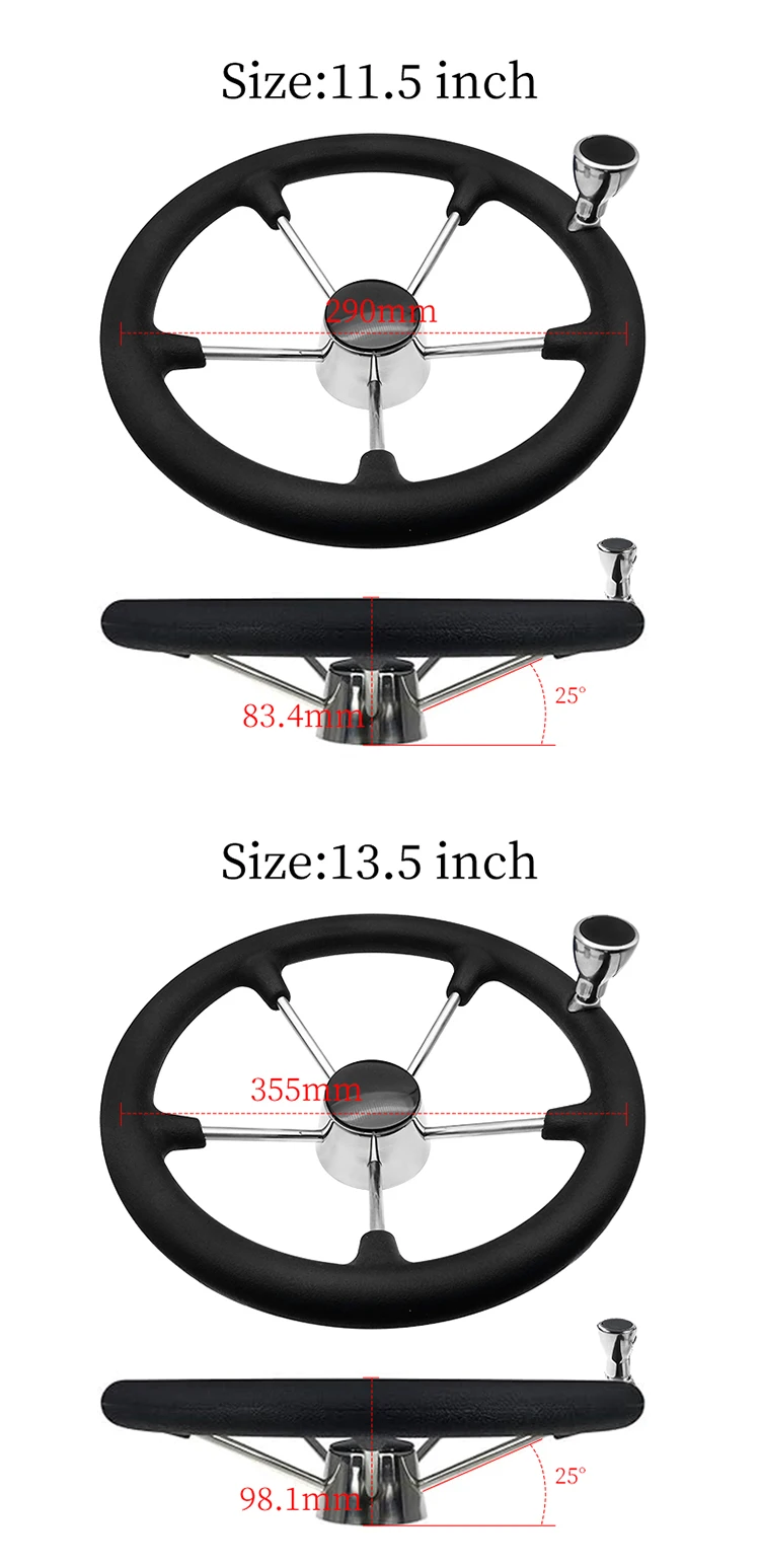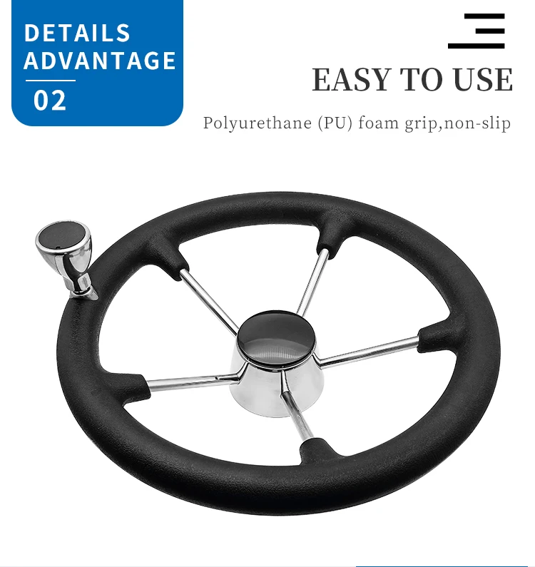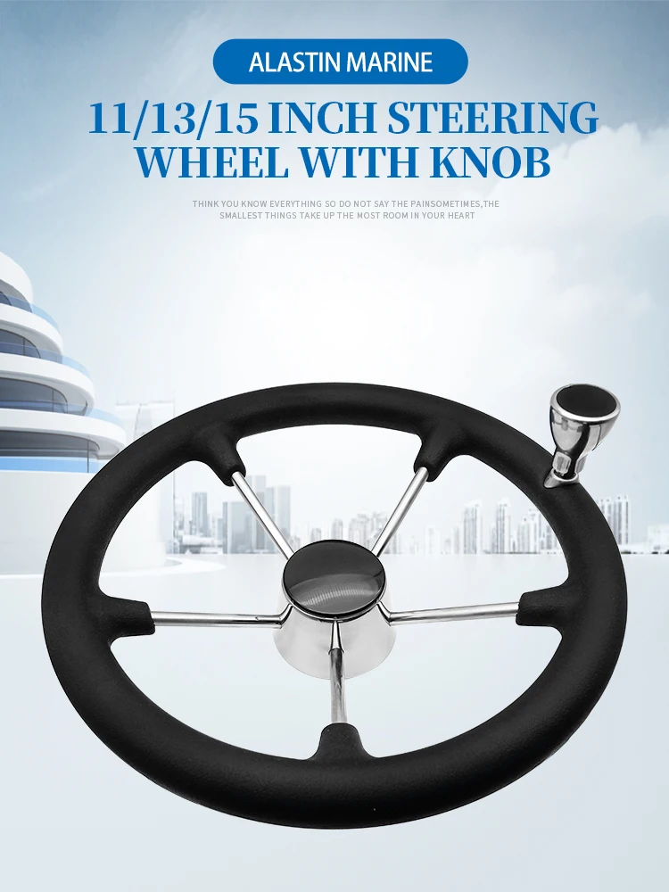 Stainless Steel 11/13/15 Inch Steering Wheel with Black Foam Grip and Knob 5 Spoke Wheel For Yacht Marine Boat Accessories