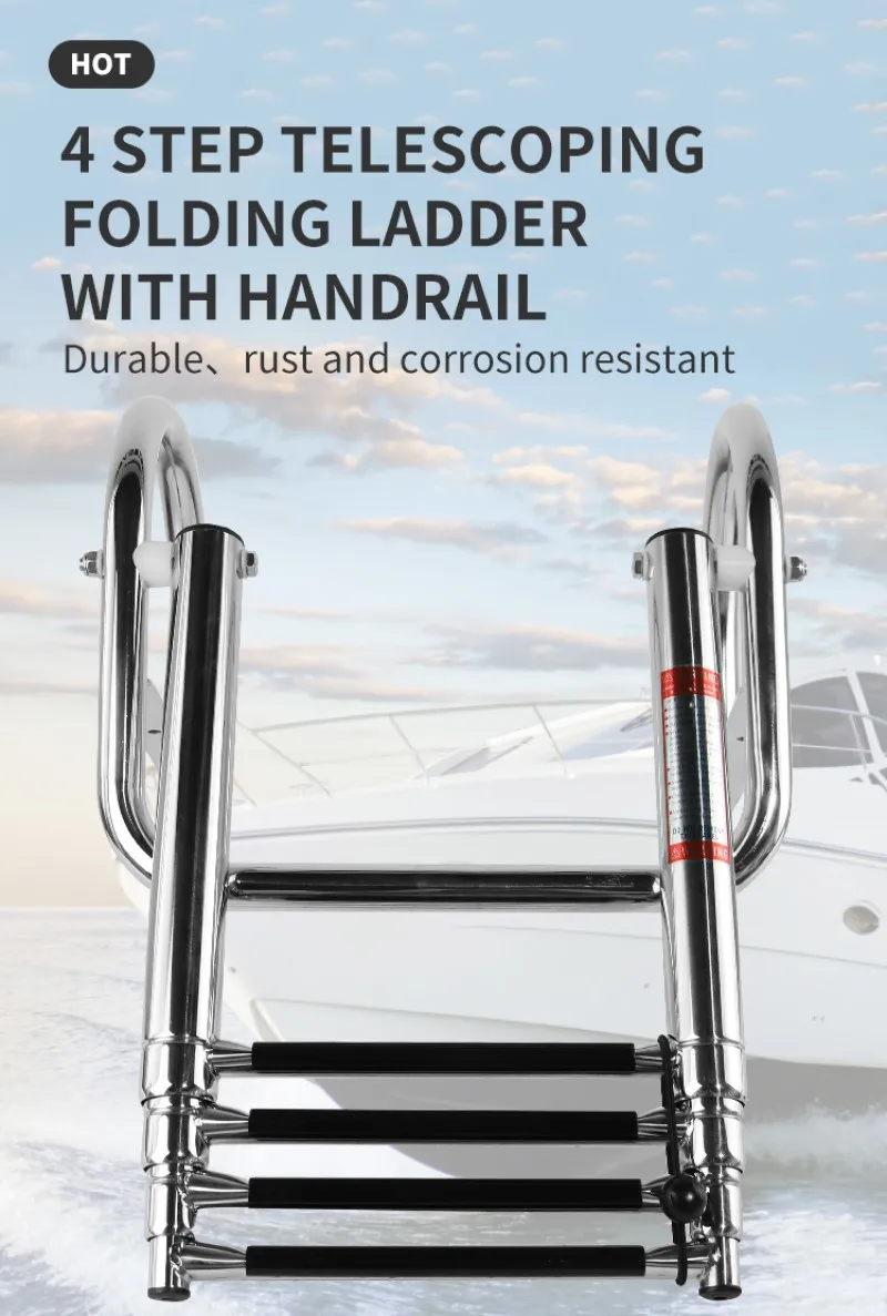 4 Step Boat Ladder Stainless Steel Boat Boarding Telescoping Ladder Sliding Folding Swimming Launching Ladder With Step Handrail