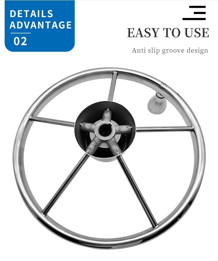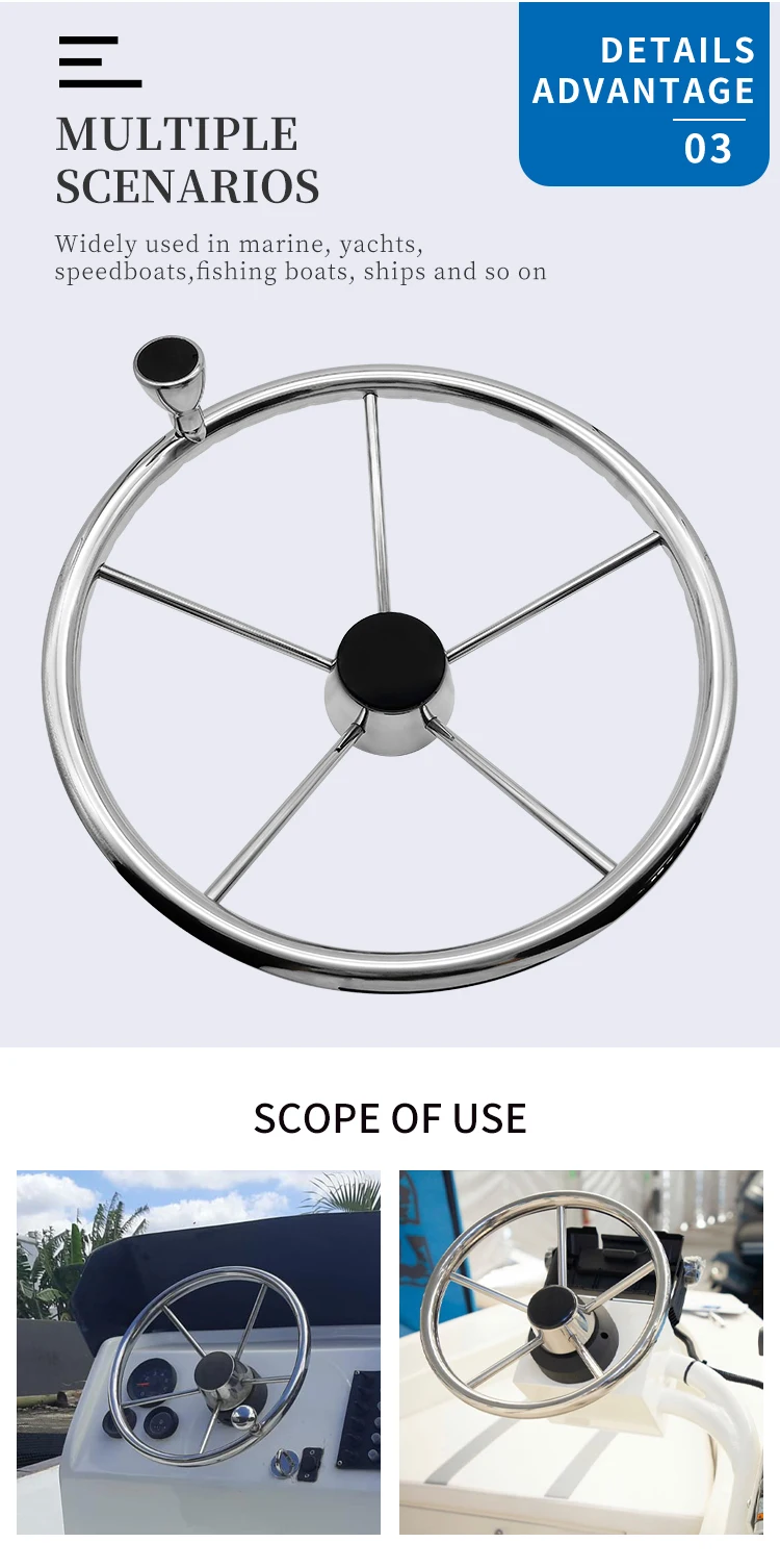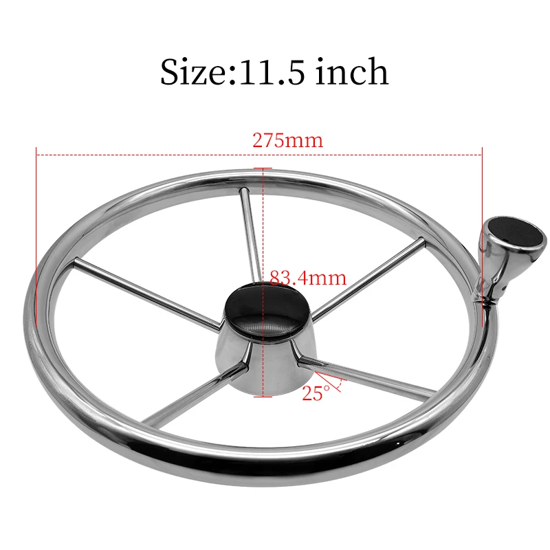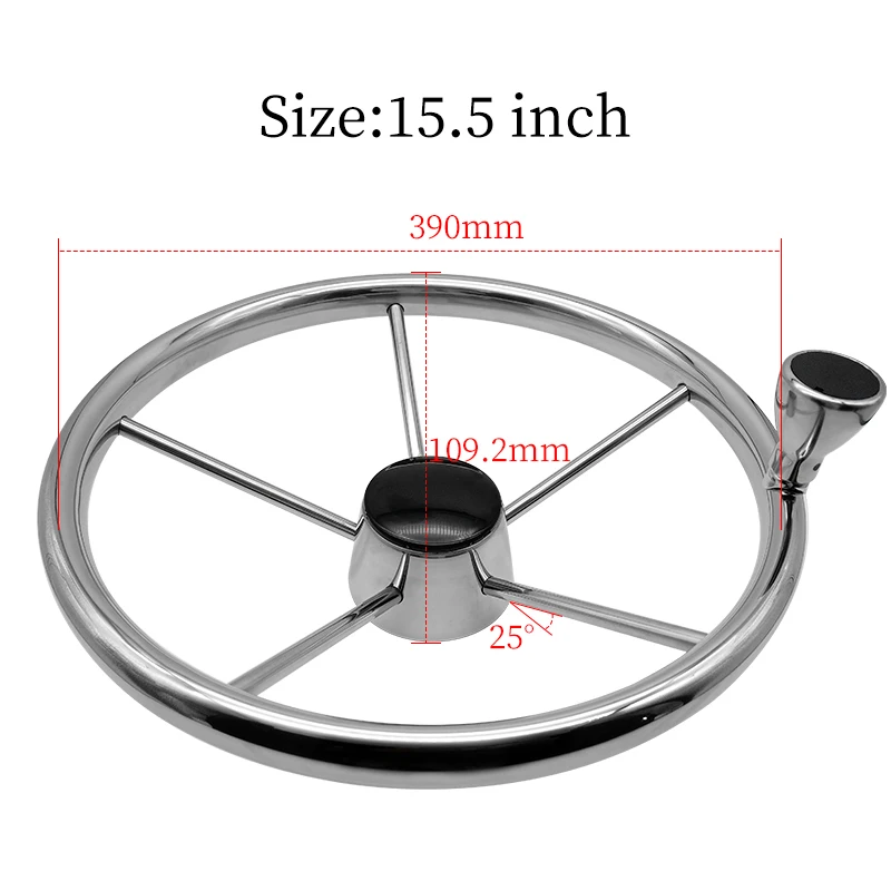 Boat Accessories Marine 5 Spoke Stainless Steel Mirror Polished Steering Wheel With knob 11/13/15 Inch