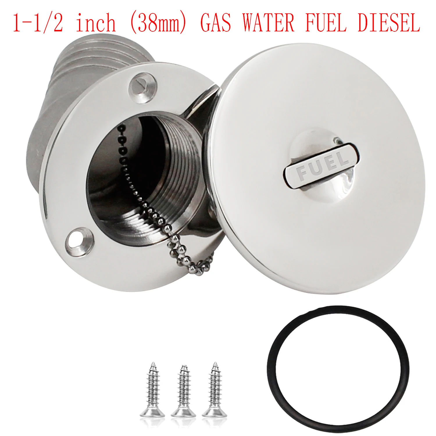 38mm Marine Boat Deck Fill Filler Tank Cap Angled Neck FUEL / WATER / GAS / DIESEL Stainless Steel 316 Yacht RV Trucks Tractors